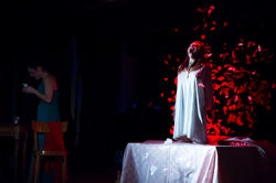 Un monologo a tre voci la nostra Traviata, tre voci (un canto disperato, la musica e la voce) che si rincorrono, si commentano, si sormontano scivolando lentamente verso il fango.
